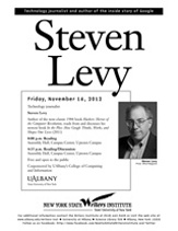 Steven Levy, technology journalist and author of the inside story of Google, will visit UAlbany on November 16 for two reading sessions. The free event is co-sponsored by the New York State Writer's Institute, and The College of Computing and Information.