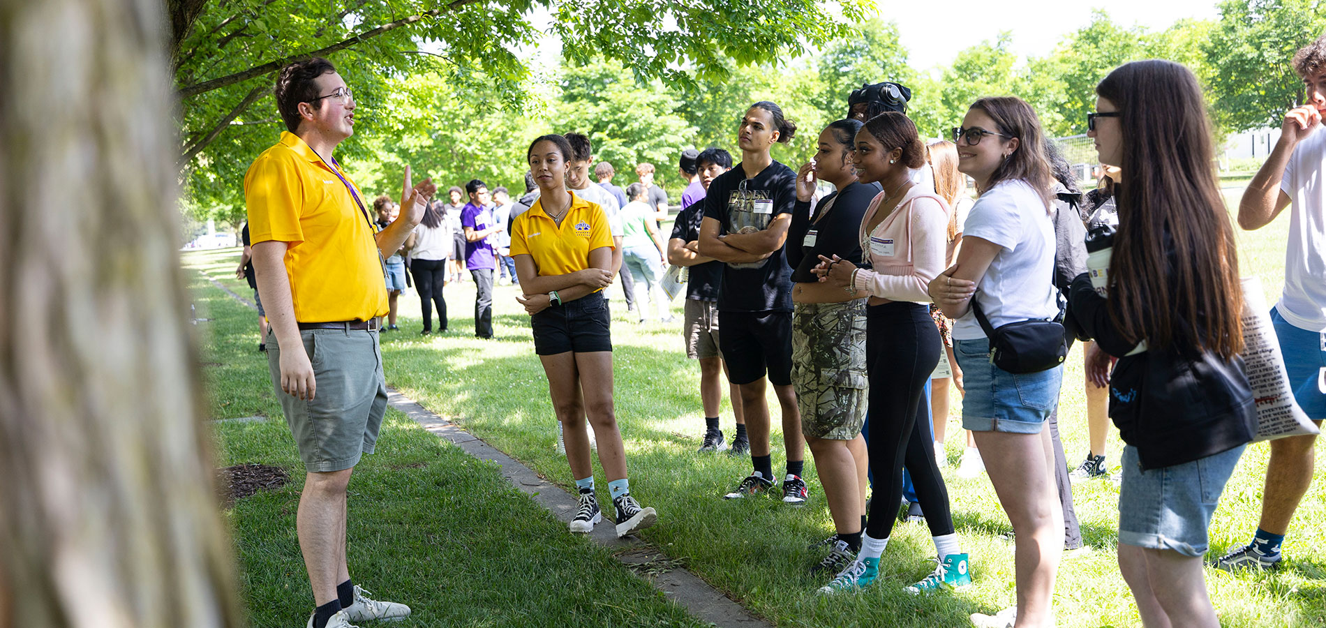 • Students and Damien posing with Alex, the host of The College Tour. Students and Damien posing with Alex, the host of The College Tour.