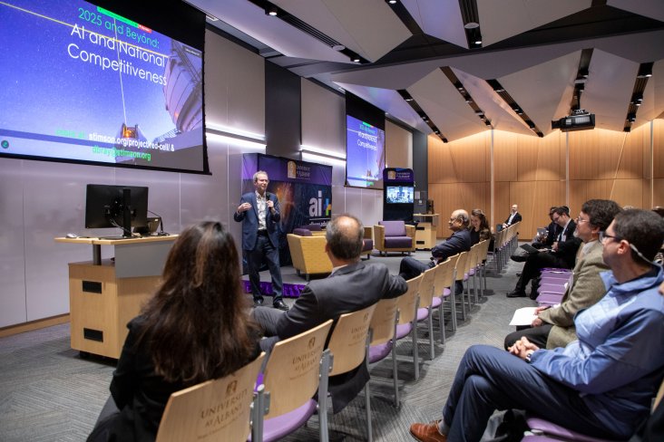 The Center brings together faculty, students and partners from across the arts, humanities, social sciences and technical fields to explore how AI is reshaping public life, culture, ethics, and governance — and to design technologies that support, reflect and protect what matters most about the human experience and the society we live in.