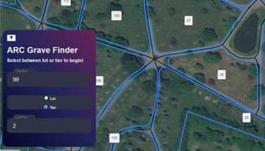 The ARC Grave Finder permits the known location of a Section - Lot or a Section - Tier to be displayed within the cemetery.