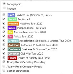 Welcome to the ARCE tutorial for first-time users! The information herin is assembled to provide orientation of this location-based application to view and query data, and navigate in the Albany Rural Cemetery. This map application may be accessed using any device including desktop computers, mobile phones or tablet with internet.