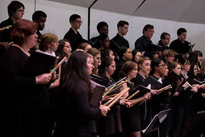 The Music Program offers students a foundational General Major and Minor as well as Concentrations in Music Theory, History, Performance, and Composition. The Department supports an array of student–community performing groups, including Concert, Marching and Pep Bands, Orchestra, Chorale, the University Chamber Singers, and Percussion, Jazz, and Chamber ensembles.