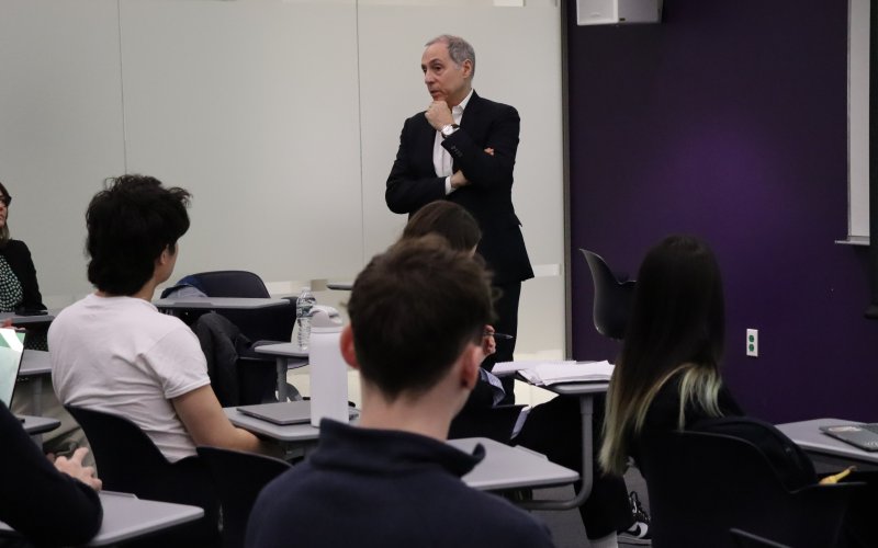 ALBANY, N.Y. (May 19, 2025) — Massry School of Business alum Brad Coleman, currently a partner at alternative asset manager, SLR Capital Partners after a 32-year career in investment banking at Salomon Brothers/Citi, shared his experience and expertise in finance with current students, as Massry’s Executive in Residence. Brad recently visited a class and fielded questions about his professional journey and the lessons he learned through numerous financial cycles and market fluctuations. He also discussed how students should prepare for a career in banking and finance.