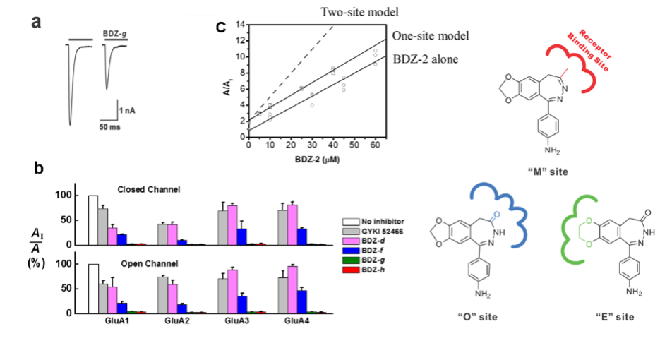 - Wang, C., Han, Y., Wu, A., Solyom, S., and Niu, L. (2014) Mechanism and site of inhibition of AMPA receptors: pairing a thiadiazole with a 2,3-benzodiazepine scaffold. ACS Chem Neurosci 5, 138-147.