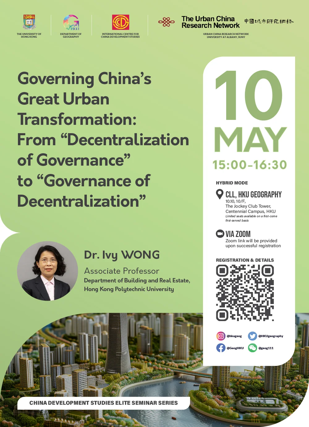 Between the 1980s and the early 2000s, the Chinese government’s efforts to promote local economic development and decentralized decision-making resulted in significant disparities in wealth accumulation at local levels. The specific development processes and outcomes in different periurban areas of China show that fiscal and administrative decentralization did not lead to a consistent pattern of local government involvement in socio-economic development. However, these varying governance outcomes do not indicate a decrease in the central state’s authority over local government. Through an empirical study of the interplay between the decentralization of state power and growing income inequality in over 40 villages in Guangzhou, this presentation illustrates how decentralization has led to horizontal fragmentation of the governance structure at the village level, rather than vertical fragmentation of the bureaucratic governance system. As a result of this horizontal fragmentation, the power of informal clan-based institutions has been weakened, rather than that of the state.