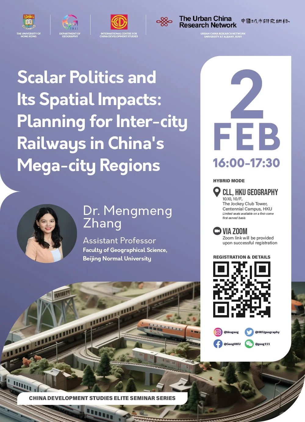 In the second half of the 20th century, China’s railway system was monopolized by the central state, represented by the Ministry of Railway, which has been challenged since the early 2000s. Ongoing prosperity of inter-city railway plans throughout the country promotes the participation of the provincial and municipal state agents. In the railway planning process, multi-level state agents struggle across scales for their preferred line alignment and station location, which reconstructs the hierarchical configuration of China’s railway system. Via the lens of scalar politics, I will explore which actors are involved in the railway planning, what they prefer for line alignment and station location and why, who has more bargaining power, what strategies are adopted in the negotiation and which cities get more transport benefits. The Pearl River Delta Inter-city Railway System Plan is adopted as a study case.