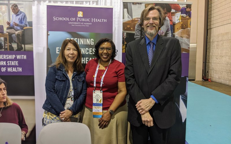 The University at Albany School of Public Health was thrilled to attend the 2019 American Public Health Association (APHA) Meeting and Expo, where public health practitioners come together to meet face-to-face with thousands of influential decision makers and professionals. In addition to a booth showcasing the University at Albany, our community was involved in the following: