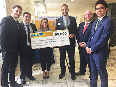 Despite being a brand-new engineering department and the first-time having the University at Albany represented at the competition, ECE seniors Andrew Boggio-Dandry, Anthony Castro, Egzon Shehu, and Steven Yoo won 3rd place, and a prize of five thousand dollars.