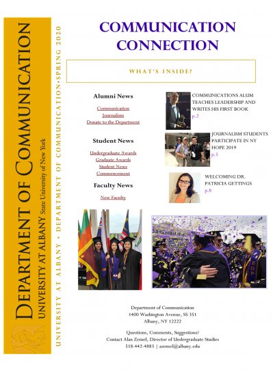 The Department of Communication Recognition Ceremony will be held on Saturday, May 14, at 12:30 p.m. at SEFCU Arena. Fall 2015 and Summer 2016 COM graduates who wish to participate should contact the COM office at 518-442-4871. A photo gallery from the 2015 ceremony can be found on our Facebook page.