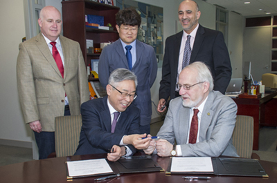 Lee, ’89 Ph.D.(Economics), visited campus to sign a memorandum of understanding between UAlbany and Hansung University which will promote mutual faculty development, dual degrees and shared academic activities.