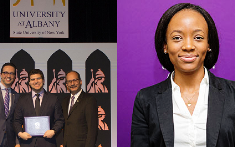 Jeffrey Shapiro and Michelle Wafo are recipients of 2018 Presidents' Award for Leadership. Jeffrey Shapiro won Community Service Leadership Award and Michelle Wafo won Outstanding Senior Award.
