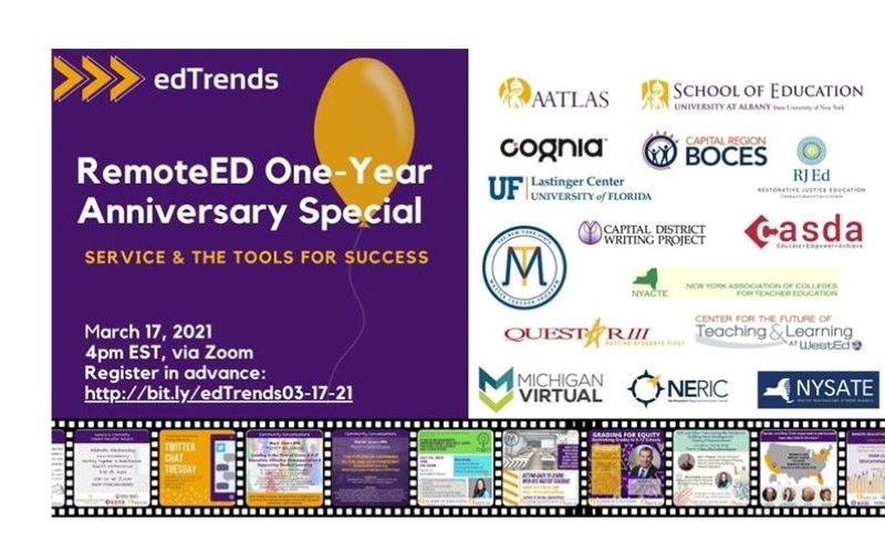 Albany, NY (March 30, 2021) – The University at Albany has just marked the one-year anniversary of the creation of the School of Education’s weekly webinar, edTrends. The webinar series launched last spring as a vehicle to foster a virtual community of educators, leaders, students, families, and the community to come together to learn about and discuss topics related to education and mental health and the COVID-19 pandemic. edTrends now attracts hundreds of viewers from around the world each month to explore critical issues facing all levels of education.