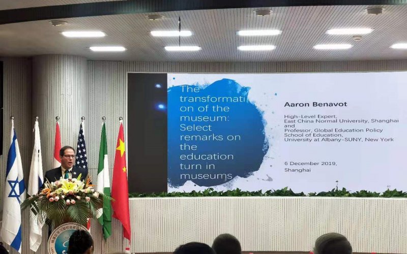 Dr. Aaron Benavot is pictured here giving a presentation at an international symposium on 'Museum Education From the Perspective of Lifelong Learning' at Yangpu Teacher Training Institute, Shanghai, China, December 6, 2019.