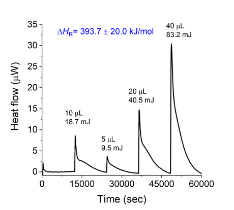 Enthalpy of enzymatic oxidation reaction measured by isothermal titration of different volumes of the substrate into an enzyme solution, using isothermal titration ampoule.