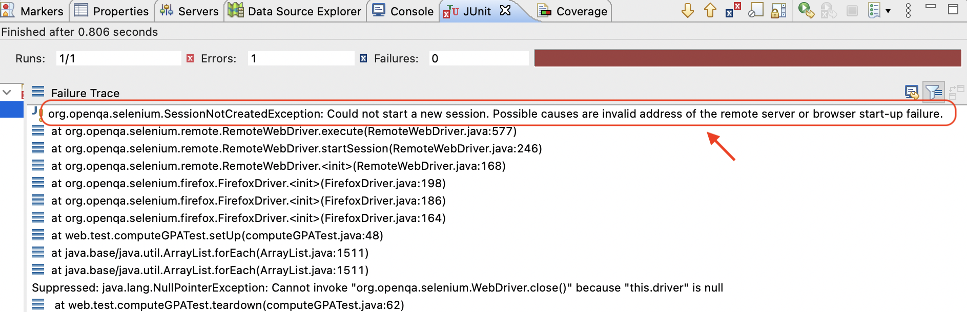 Important note: Selenium tests run on a web browser. Whenever you update your web browser, please verify that your Selenium's browser driver supports the version of your web browser. If it does not support, you need to download and set up the browser driver. Remember to verify that their versions are compatible.