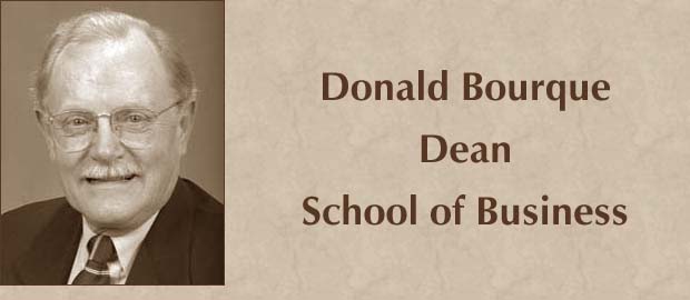 Donald Bourque has been named to serve as dean of the School of Business for a two-year term. Bourque, who had served as interim dean of the School of Business since July of 1994, joined the University as associate dean and professor of accounting in 1972. He received his M.B.A. and Ph.D. from the University of Washington, and has focused his research on topics of accounting, management, information systems, cost analysis, and business strategy. He has also been active in designing and promoting executive development programs in the U.S. and abroad.As interim dean, Dr. Bourque has demonstrated he has the experience, energy, and commitment to assume this major and important responsibility, Provost Genshaft said. I am pleased that he has expressed interest in continuing the assignment for the 1997-99 term.