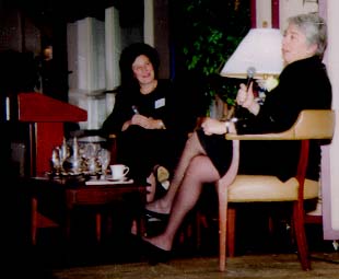 President Hitchcock conducts a conversation with the Ford Foundation's Alison Bernstein at the Fourth Annual Initiatives For Women awards dinner on Nov. 5 at Wolfert's Roost Country Club. In addition, the dinner featured the awarding of 21 monetary prizes for 1997 to women. Included were five "named" awards, a number that will double in the next round of award judging, which begins next week. The total number of competitive awards over four years has now risen to 75, and total money raised for the awards program has now topped the $100,000 mark all numbers the AAUW was unaware of when it judged programs for its award last spring. DeSole is confident that IFW will give out its 100th award to women in 1998.