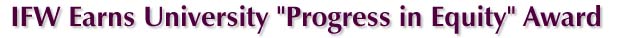 Jeanette Knapp, director of college and university membership for AAUW's New York chapter, notified Gloria DeSole, senior advisor to the President for affirmative action and chair of IFW's steering committee, that "Your program was awarded the 1998 New York Progress in Equity Award because of its volunteer and philanthropic nature and widespread impact on women students, faculty and staff.