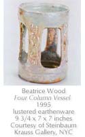 ALBANY, NYThe University Art Museum begins the new year with Crossing the Threshold, an exhibition of work by 31 seminal twentieth century artists. Some are well known, others are lesser known; all are women 70 years or older and all continue to produce significant works of art. Crossing the Threshold is curated by Bernice Steinbaum, director of the Steinbaum/Krauss Gallery in New York City (SoHo) and includes work by Mary Adams, Eppie Archuleta, Louise Bourgeois, Leonora Carrington, Muriel Castanis, Elizabeth Catlett, Fay Chandler, Clyde Connell, Ruth Duckworth, Helen Frankenthaler, Grace Hartigan, Margo Hoff, Lois Mailou Jones (1905-1998), Gladys Lander, Edna G. Lazaron, Agnes Martin, Agueda Martinez, Ruth Nivola, Pat Passlof, Beverly Pepper, Beatrice Riese, Clare Romano, Elsie Tsosie Sandoval, Miriam Schapiro, Elizabeth T. Scott, Sylvia Sleigh, May Stevens, Toshiko Takaezu, Lenore Tawney, June Wayne, and Beatrice Wood (1893-1998). Ms. Steinbaum says she chose these 31 artists because their work continues "to have an originality and buoyancy that belies the fact that they are venerable pioneers of American art. These artists engage the world as though it has been seen for the first time." Crossing the Threshold features work in a variety of mediums including prints, sculpture, painting, drawing, ceramics, weaving, and photography. Historical perspectives on the artists' contributions to twentieth century art are provided through supplemental label text and video documentaries. It is hard to imagine what the current art scene would look like if the artists in Crossing the Threshold, and others who shared their affinities, had never fought for art world recognition. By breaking boundaries of gender as well as artistic tradition, their pioneering efforts have left an indelible mark on current art practices. In the exhibit's accompanying catalog, Ms. Steinbaum expresses the hope that in the future, "an exhibition exclusively devoted to artists who are women will be obsolete." What makes Crossing the Threshold unique is that it manages to provide a variety of historical contexts by which to access art that simultaneously acknowledges and negates gender and age barriers. After all concludes Ms. Steinbaum, "Isn't the test of art the art itself?" Crossing the Threshold first opened at the Steinbaum/ Krauss Gallery in 1997. In addition to the University Art Museum the exhibit will travel through 2001 to fourteen venues across the United States including the Museum of Arts and Sciences, Macon, Georgia, Mississippi Museum of Art, Jackson, Mississippi, McAllen International Museum, McAllen Texas, Walton Arts Center, Fayetteville, Arizona, and the Hekel Union Art Galleries, Pennsylvania State University, University Park, Pennsylvania. Venues prior to the University Art Museum include Steinbaum Krauss Gallery, New York, New York, Brevard Museum of Art and Science, Melbourne, Florida, and the Spencer Museum Art, Lawrence, Kansas. A fully illustrated catalog of the exhibit is available. For further information, including photographs and artist interviews, call Corinna Ripps Schaming at (518) 442-4038.