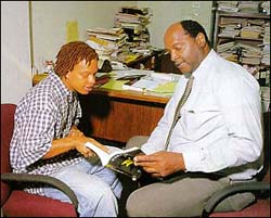 Carson Carr meets with undergraduate Nyamekye Barton"Carson Carr is a treasure at this University," said Judy Genshaft, provost and vice president for academic affairs. "He is an excellent leader who cares about the success of all his programs. We are very proud that he is part of the University at Albany family."