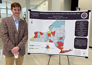 Benjamin's research poster, Comparing Black Population to Opioid Related Deaths in New York State, 2021 was also featured at this year's UAlbany Showcase Day.