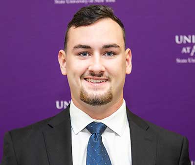 As part of his UAlbany program, Roche had the opportunity to intern at Speedway LLC last summer. The internship gave him invaluable career experience. He learned about all aspects of the company, from operations to retail, marketing to human resources. He has also gained critical skills from his favorite class, Entrepreneurship with Professor Wales. With Wales’s guidance, Roche improved his public speaking ability and describes a group project for which he developed a business plan for a clothing brand for the visually impaired as a “great experience.”