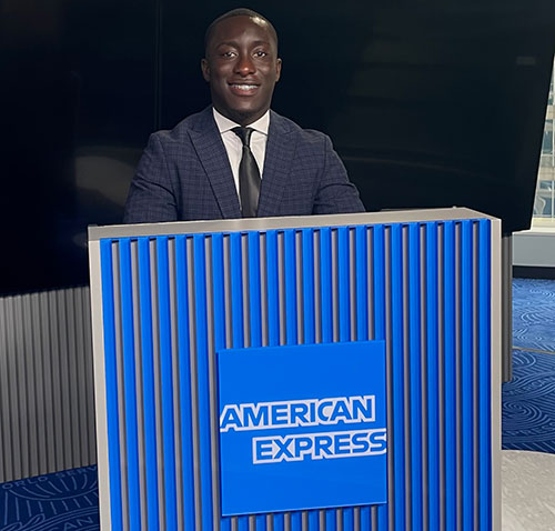 Among those resources was Noah Simon, director of Career Planning in UAlbany’s Career Services Office. Through Simon, Berkoh connected with Stefanos Marcopoulos '07, MS '08, vice president of Global Risk and Compliance at American Express (AMEX) and president of the UAlbany Alumni Association Board of Directors.