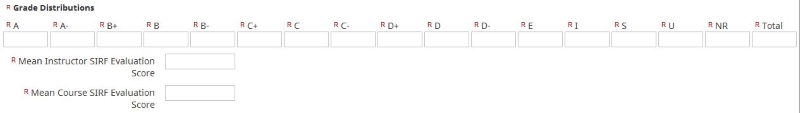 Grade Distributions and Student Instructional Rating Form (SIRF) Scores are pre-populated when available (i.e., once grades have been processed by the Registrar and once your students' responses to SIRF have been fully recorded).