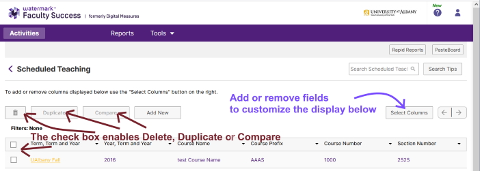 Information from the Registrar's Office is prepopulated into the activity records for teaching, independent study and dissertations, including data such as name, enrollment, and grades. This information should be reviewed and additional information may be added, such as pedagogical innovations, new teaching materials, or public engagement.