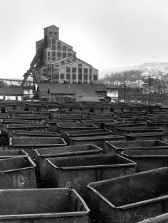 Empty coal cars in front of No. 8 breaker, Coaldale, 1955