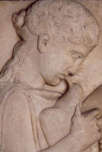 Close-up of Stele of Young Girl from Pharos. Metropolitan Museum of Art. Photograph by Maria Daniels. From Sculpture Catalog of Perseus 2.0. |