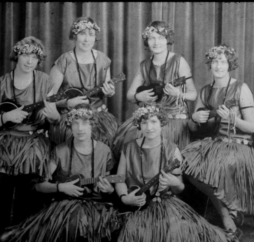 the ukeles, the leas and floral headdresses from the movies and popular literature.