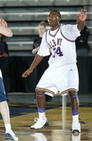 Continuing the cross-town rivalry The Great Danes vs. the Siena Saints for the opening of the 2003-2004 season. Come down to the Pepsi Arena on Friday, November 21st for an exciting evening of basketball! The women will tip off at 6:00 p.m. Sophomore Levi Levine (right) and the rest of the UAlbany men tangle with Siena at 8:00 pm. Last year�s game was great right down to the final buzzer, so make sure you�re there for all the action!