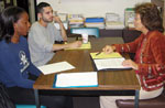 Next a meeting with graduate students Xenobia Barrow and David Miljoner who are co-teaching the course LCS 100 Cultures of Latin America this semester. She gave them some feedback on a recent classroom visitation and they discussed strategies to get the students more engaged in discussions after PowerPoint presentations are made.