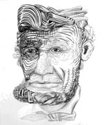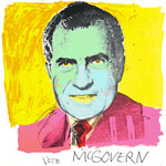 Their works in Mr. President run the gamut from irreverent humor to deeply felt homage. Representing a wide range of cultural backgrounds and artistic orientations, the artists selected for the exhibition share an interest in reflecting on the idea of the American presidency in relation to their own artistic practice. Their work provides a provocative sampling of how the American presidency remains an elastic idea that extends far beyond the men who have held its office. Exhibition highlights include Robert Colescott's seminal painting, George Washington Carver Crossing the Delaware: Page from an American History Textbook (1975), an appropriationist tour de force in which the central figures of Emanuel Leutz's famous 19th Century masterwork are recast in blackface; Andy Warhol's silkscreen, Vote McGovern (1972), in which the head of Richard Nixon screened in acidic green looms against a Day-Glo orange background; and two paintings by the classic satirist Peter Saul: Ronald Reagan in Grenada (1984) and Dali Advises the President (2004). Also featured are Jonathan Herder's comic send-ups of Presidential hairstyles; Jeffrey Vallance's life-size wax sculpture of Richard Nixon holding a copy of the Watergate tapes; Robert Terry's sincere homages to Abraham Lincoln rendered in vivid impasto on 20x16-inch store-bought canvases; James Esber's intricate drawings in which the familiar visages of Abraham Lincoln and Richard Nixon are transformed into distorted calligraphic terrains crawling with unexpected twists and turns; and Dave McKenzie's video, We Shall Overcome (2004), in which the artist comically disguised as Bill Clinton navigates the sidewalks of Harlem.
