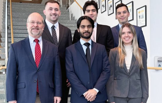 UAlbany students Sophia Hofer, Kevin Holder, Tyler Rico, Ashar Zahid and team leader Nohl Schwandtner and won the New York competition at the annual global CFA Institute Research Challenge.