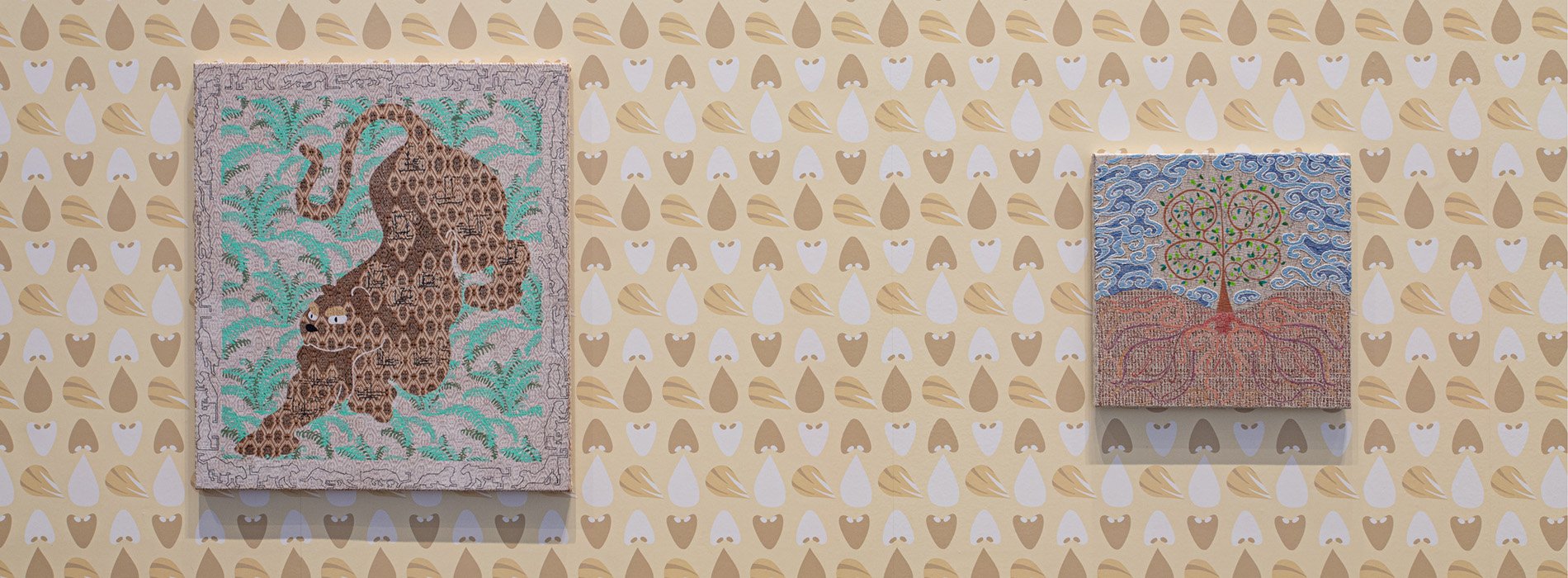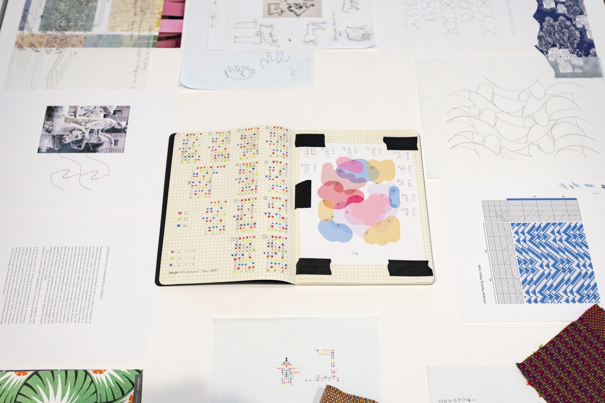 Operating at the intersection of craft, technology, and contemporary art, Mark Barrow and Sarah Parke explore visual systems with their collaborative weaving and painting practice. Systems and Mythologies is the first solo museum exhibition for the artist duo and will showcase newly commissioned textiles and paintings, as well as site-specific wallpaper and vinyl window installations that extend their patterns throughout the space, alongside earlier series showing the arc of their fifteen-year collaboration.
