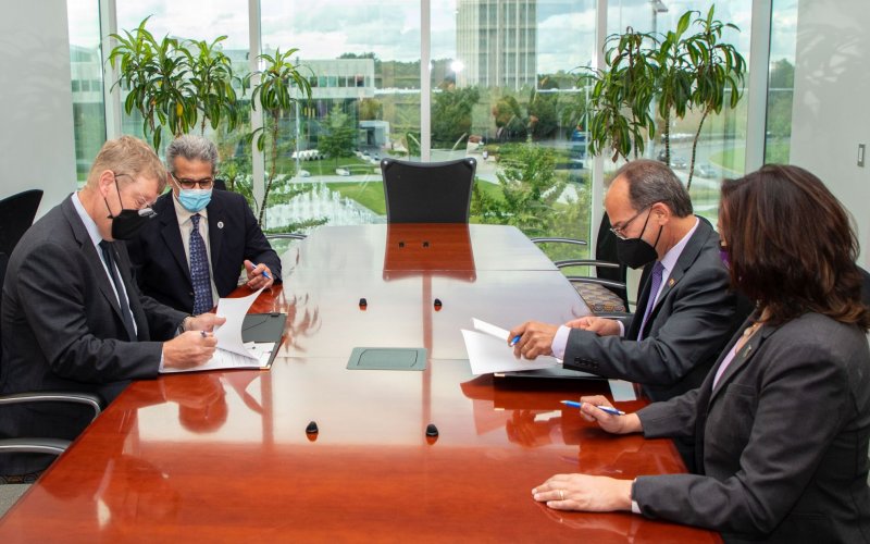 ALBANY, N.Y. (Oct. 6, 2021) – The University at Albany and SUNY Polytechnic Institute entered into an agreement that allows students of each institute to easily take courses at the other as visiting students.