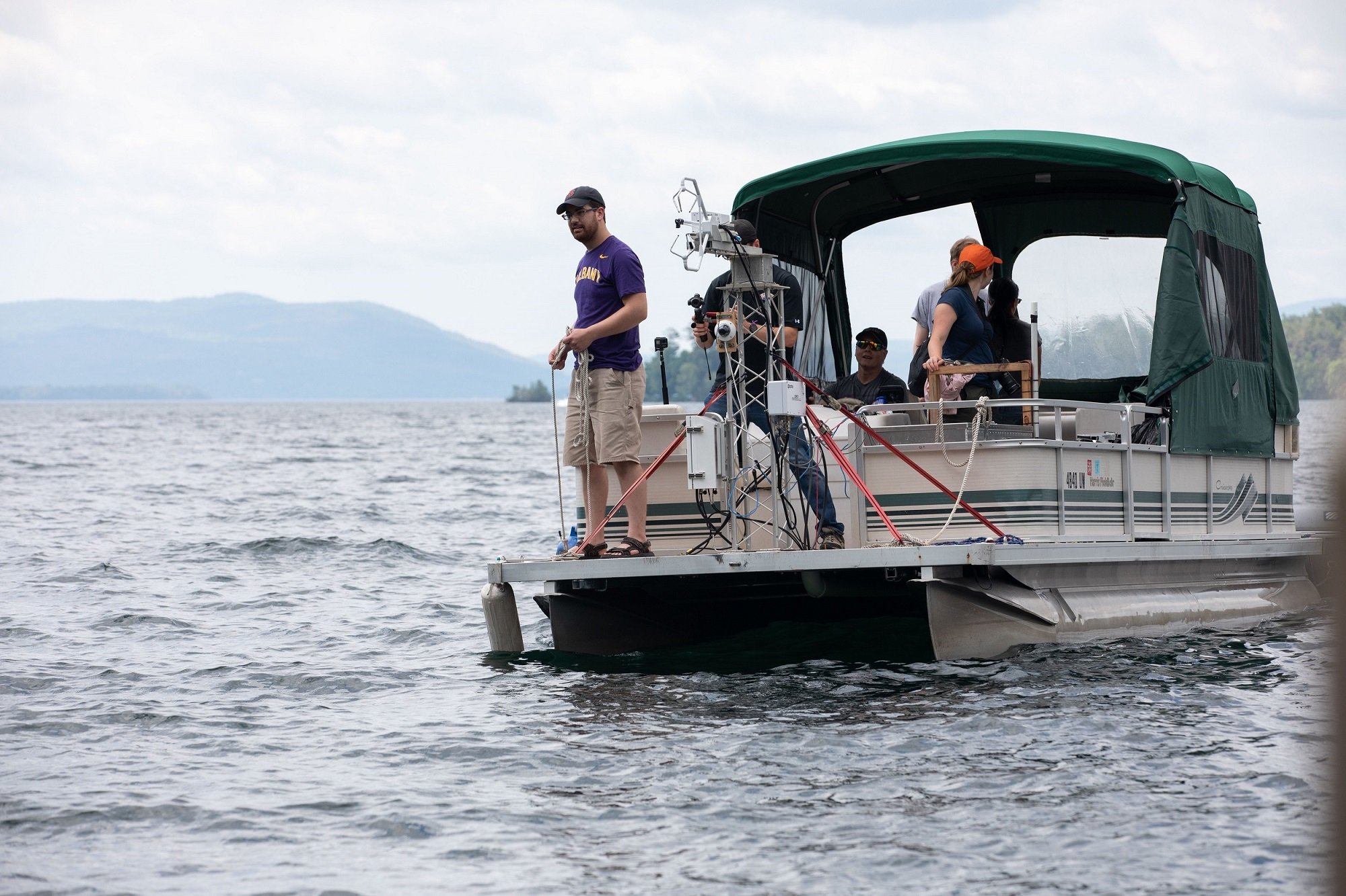 The first phase of field testing started in June on Lake George in Upstate New York. It is focused on the design and deployment of the EC flux measurement system along with a 3D scanning lidar. ASRC researchers are using a 24-foot pontoon boat that has been modified for flux measurements. Partner researchers from Hobart and William Smith Colleges and Cornell University are also leading field tests on Oneida Lake and Seneca Lake in Central New York this summer.