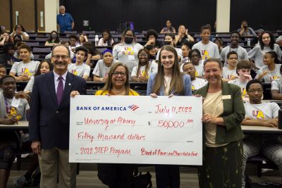 Santiago noted that the success of STEP is a result of collaboration and support from NYSED, the Albany City School District, Bank of America, and the University Administration. “Our STEP CORE summer program is successful because of our collaborations and commitment to the youth we serve in the Capital Region,” she said. “The past success of our STEP CORE graduates has resulted in countless benefits for our current student participants. The precedence of excellence set by prior scholars is a model for our younger STEP students.”
