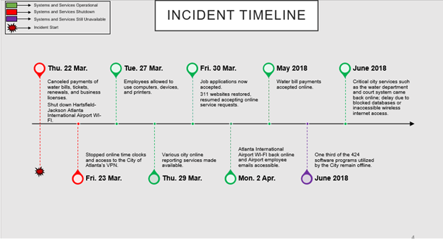 Through the capstone course, students worked together to research large-scale cyber incidents – in Atlanta, Baltimore and New Orleans – that had impacts on city agencies and their services.