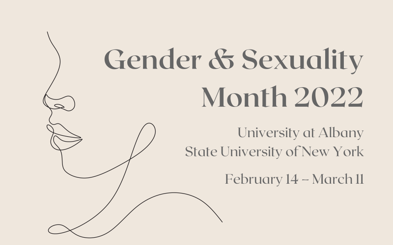 ALBANY, N.Y. (Feb. 15, 2022) – A full month of virtual and in-person events will celebrate the University’s annual Gender and Sexuality Month, including presentations from authors, Zumba, educational talks and more.