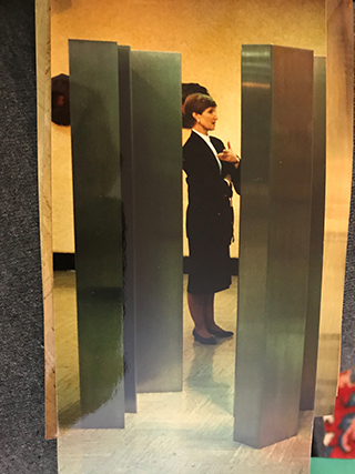 She recalled that UAlbany had a “welcoming atmosphere,” but that work conditions for sculptors, pre-Boor Sculpture Studio, “were not the best. The studio was on the second floor of the Fine Arts Building and I remember having to measure the elevator to make sure that I could get my work on it. Later on we had to drive out to Scotia, where they had rented an airplane hangar that was freezing cold except for a small room in the back. Another challenging place! But I sensed that Richard was happier there because there was more room to work.”