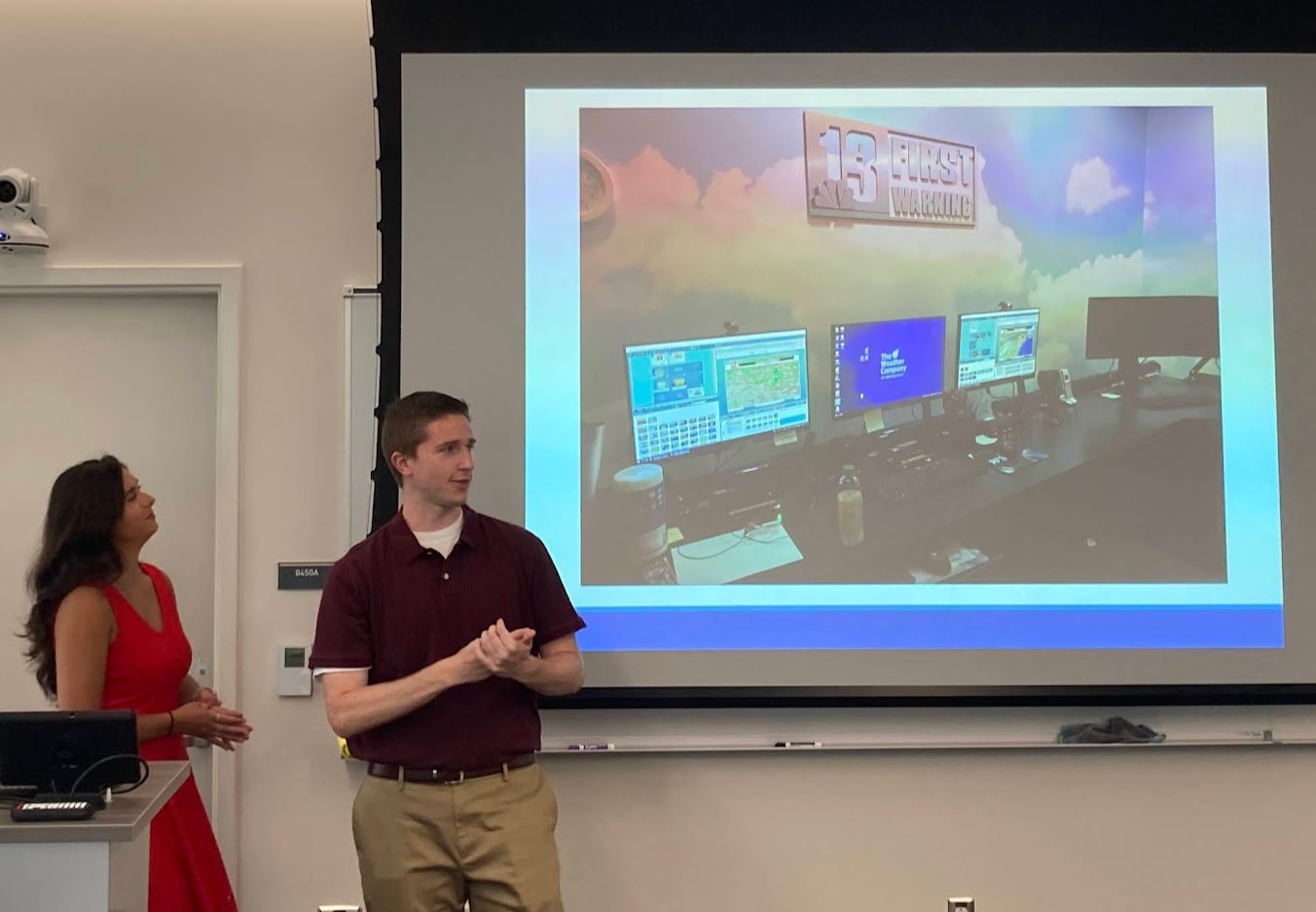 Students learned about career opportunities as well, including a presentation and “green screen” practice with WNYT on-air meteorologists Christina Talamo and Reid Kisselback, both recent Department of Atmospheric and Environmental Sciences alums.