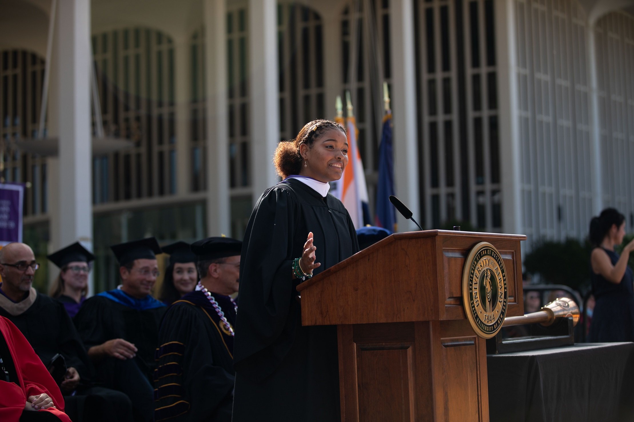 While Commencement marks the completion of study, Opening Convocation celebrates a student's entry into higher education. The roughly 30-minute ceremony on Friday included remarks from President Rodríguez, Provost and Senior Vice President for Academic Affairs Carol Kim, Vice President for Student Affairs Michael Christakis, Torch Professor Jeffrey Berman and student speaker Eva Alvarez Ero.