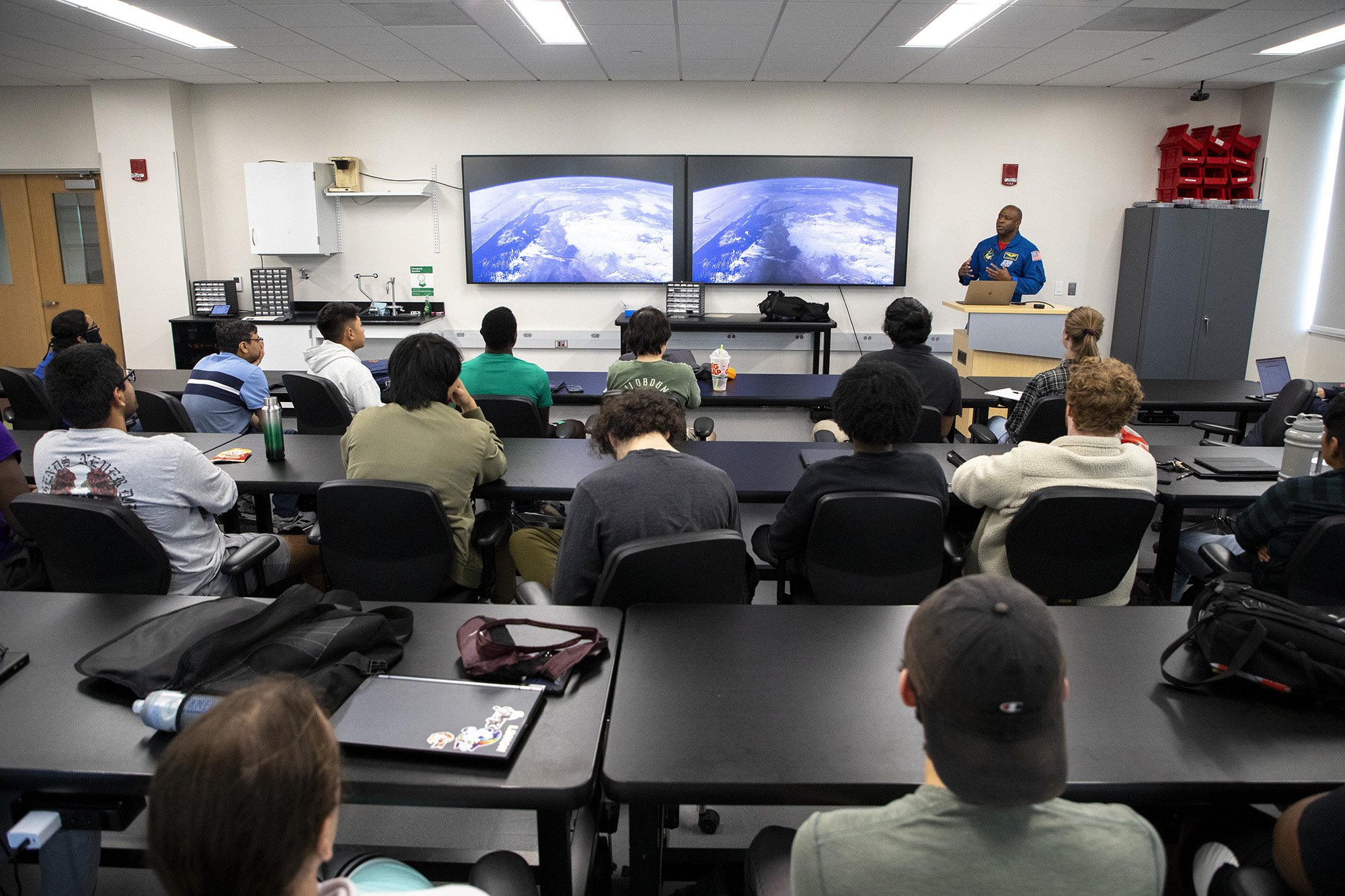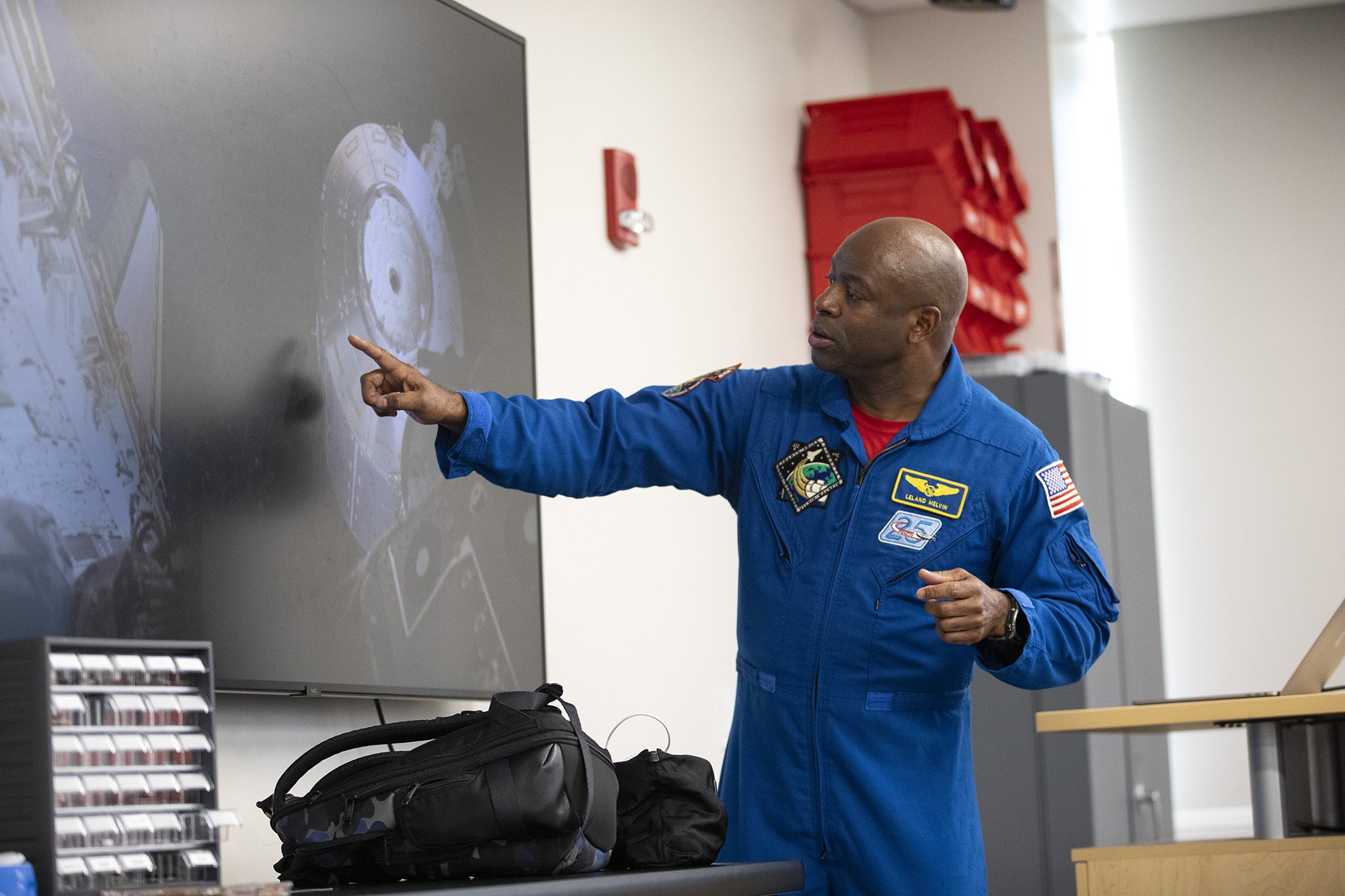 Melvin shared stories and photos of his two missions to the International Space Station onboard the Space Shuttle Atlantis. He also delivered words of wisdom to the future explorers in the room.