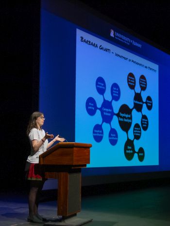 ALBANY, N.Y. (Sept. 19, 2023) — Thirty-two newly hired faculty introduced themselves and their work Monday at a Pecha Kucha, a rapid series of one-minute, one-slide presentations.