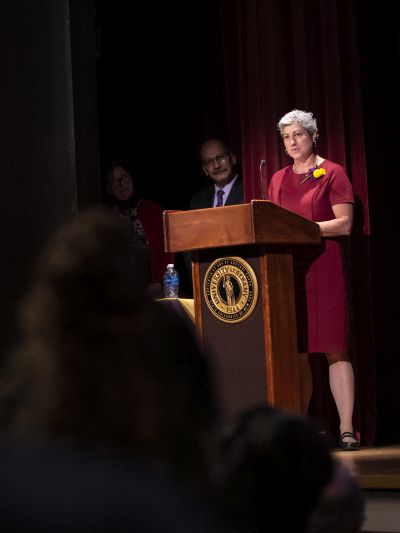 Mary Gallant, interim dean of the School of Public Health, introduced Jurkowski, a professor in social, behavior and community health who is both passionate about improving health inequities and committed to building relationships between UAlbany and the community.