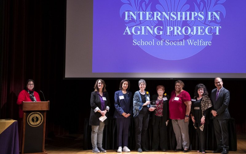 Students in the program dedicate more than 4,000 hours in the field each year, providing services for older adults and aging-related service providers in the Capital Region, said Nina Inman, who introduced the program at the awards ceremony. Inman is an IAP alum who graduated from the School of Social Welfare with an MSW in 2015, and now serves as a project officer for the U.S. Health Resources and Services Administration, working on an initiative related to HIV and aging.