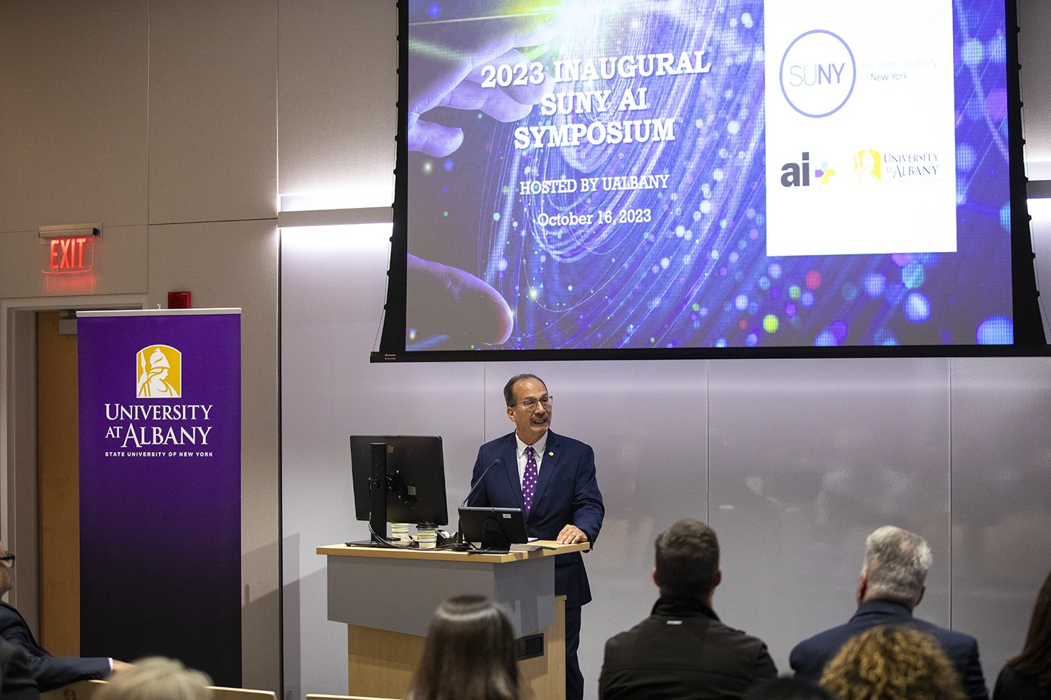 ALBANY, N.Y. (Oct. 24, 2023) — From SUNY's Inaugural AI Symposium to the annual BioInnovation Forum, UAlbany's first Research & Entrepreneurship Week brought together educational institutions, industry partners and NYS Government to harness the spirit of collaboration and advance New York’s research and technology footprint.